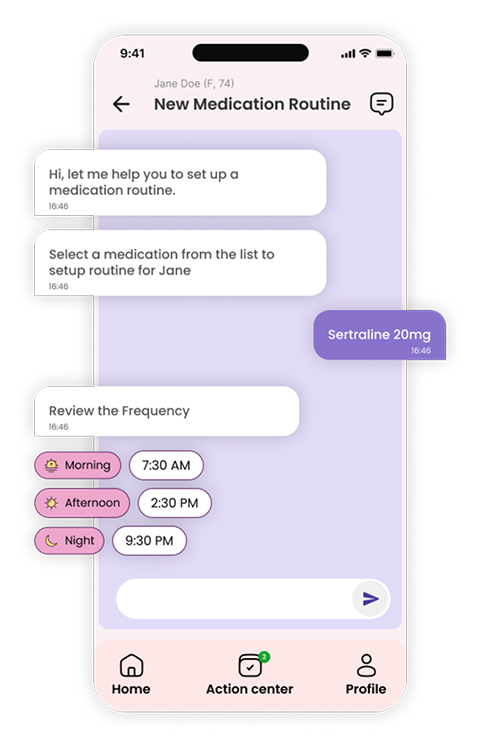 A central hub for managing their loved ones’ care needs, including scheduling appointments, tracking medications, monitoring their well-being, collaborating with family members and connecting with care providers.